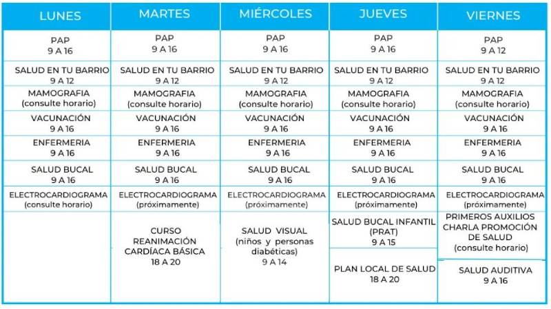Compartimos abajo el calendario con horarios correspondientes. Es un servicio gratuito y para todos.