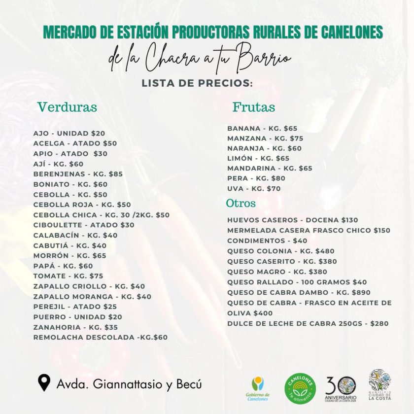 El tan esperado Mercado de Cercanía de Productoras Rurales de Canelones regresa a la Plaza Zelmar Michelini en Ciudad de la Costa este viernes 22 de marzo a las 14:30 horas. Ubicado en la intersección de Avda. Giannattasio y Becú, este mercado ofrece una amplia variedad de productos frescos y locales directamente de las manos de los agricultores y productores rurales de la región.