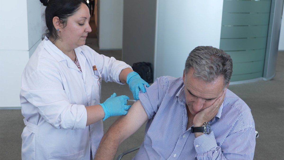 El mandatario se remangó la camisa y recibió la dosis de la vacuna en su brazo derecho. También se vacunaron Tamara Paseyro, Pablo Menoni y varios funcionarios de Casa de Gobierno.