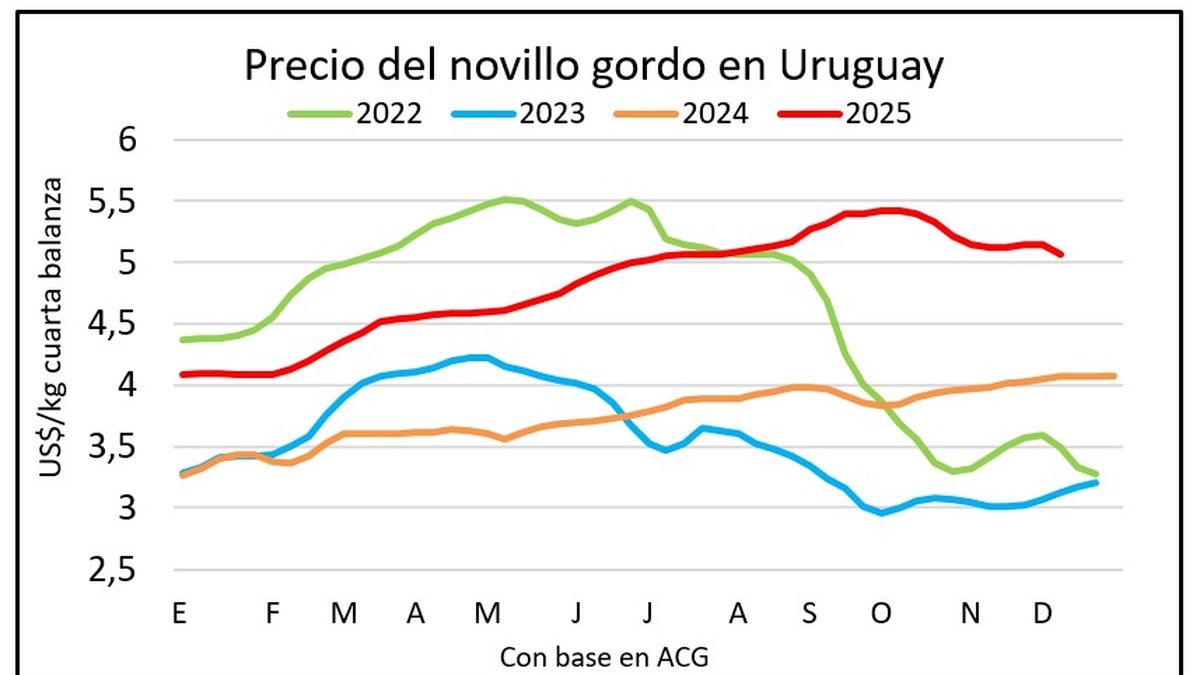 El año entra en su recta final con la referencia de precio de los novillos de US$ 5 a US$ 5,10 por kilo en un mercado ganadero con pocos negocios Fuente: enlace original